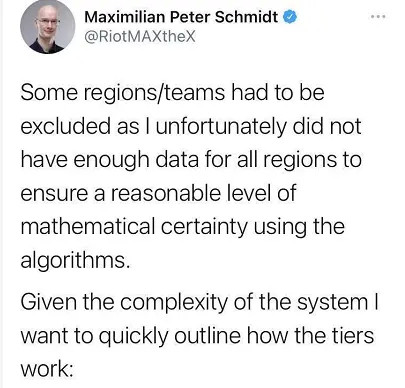 LEC主管MAXtheX发布了四个等级(S、A、B、C)的战队排名以及排名规则。