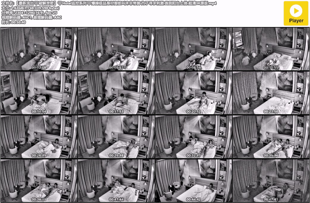 【MP4/1.6G】【最新流出❤️破解泄密】❤️Hotel监控系列❤️爆操极品身材御姐叫床非常御 为了寻求刺激 跑到阳台上做 超清3K原版