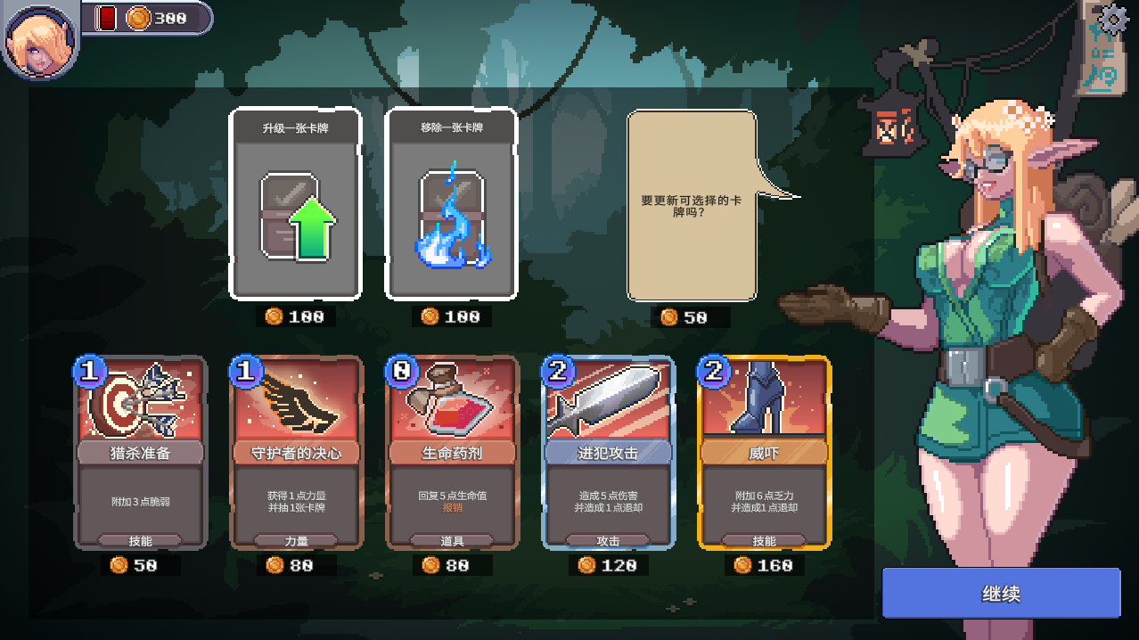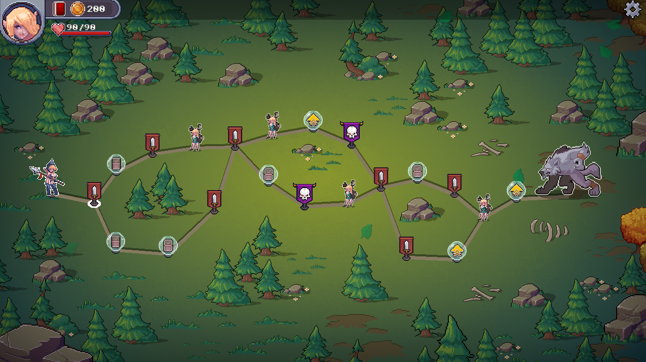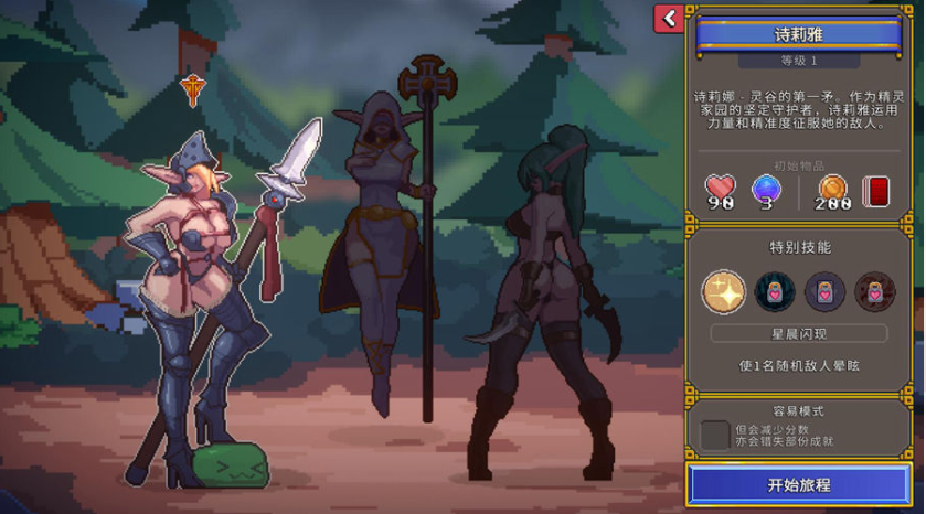 每位精灵们都有独特的技能和卡牌组。她们将会遇上各种不同的敌人,